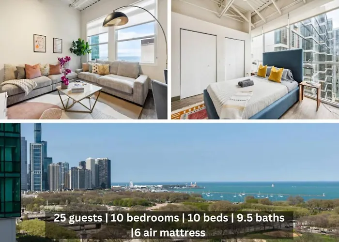 Netsled in the Downtown Chicago district, the Chicago holiday home is 2.6 km from the half - mile - long Navy Pier and 2.2 km from such shopping venues as the McCormick Place. Millennium Public Park can be found a short way from the accommodation, and the 5 million US gal Shedd Aquarium is nearly a 5-minute ride away. Downtown Mich Ave - 6 Penthouses, Sleep 25 villa offers sports enthusiasts to discover the 1924 open - air stadium "Soldier Field", located 2.1 km away.